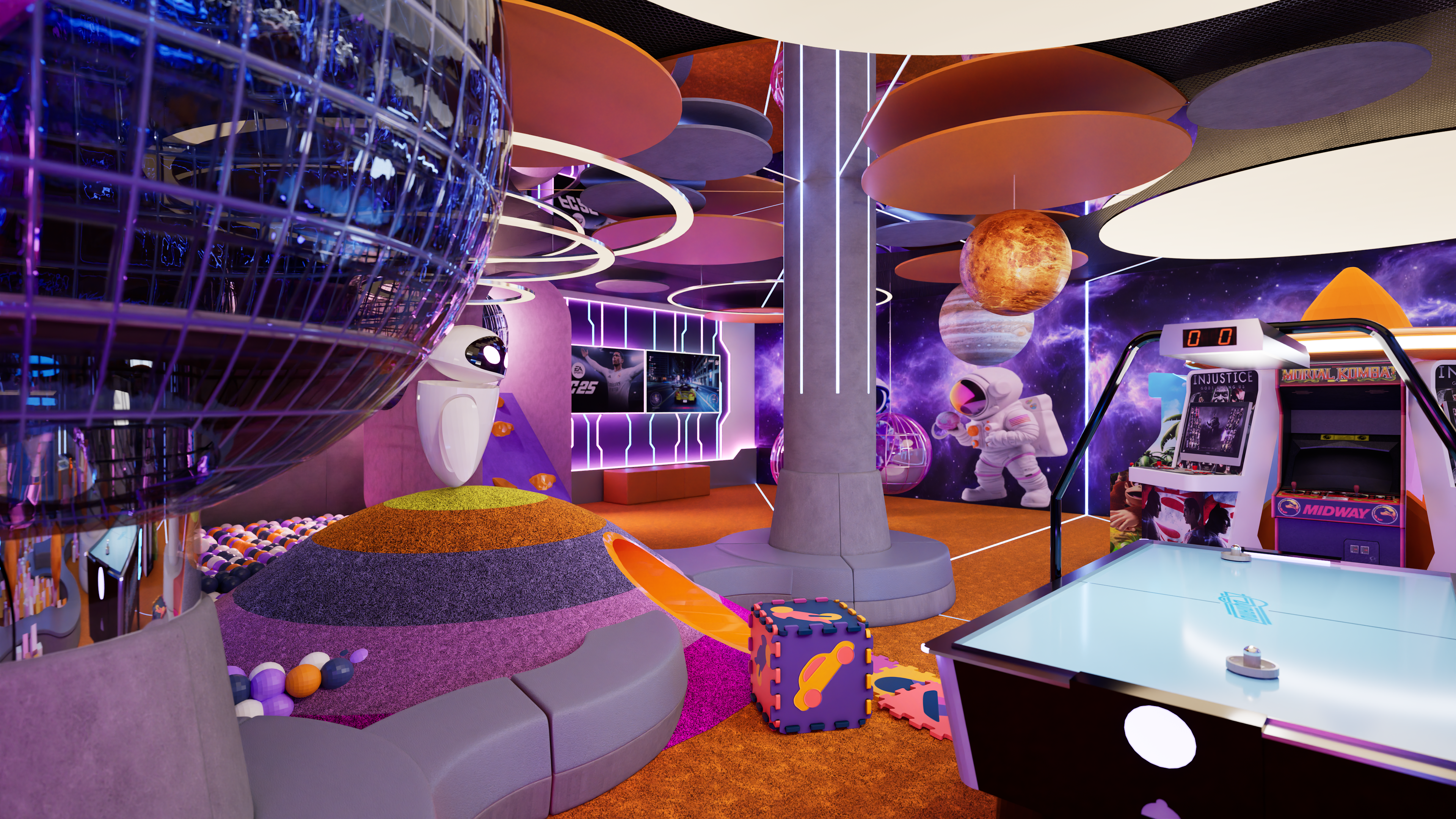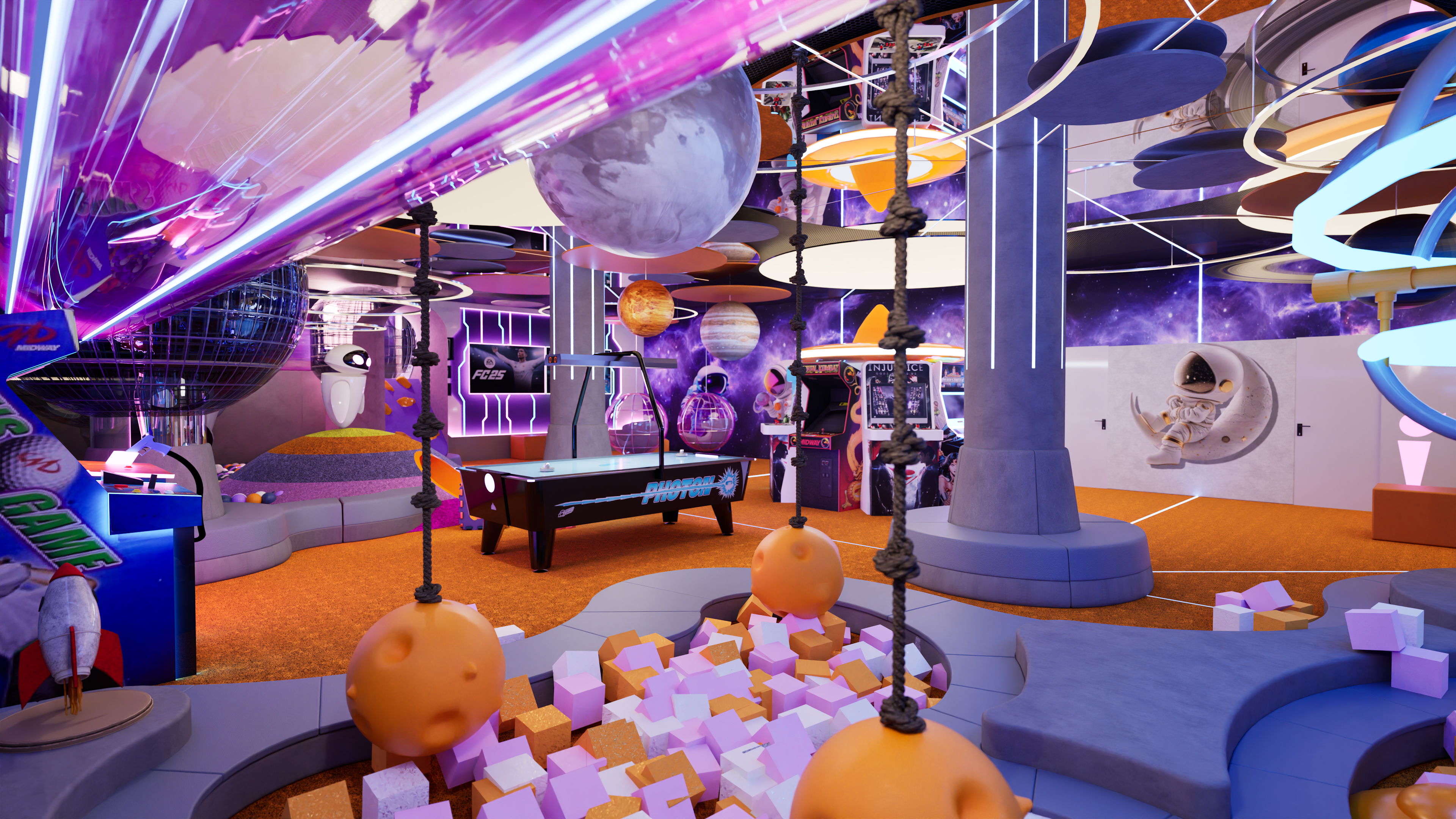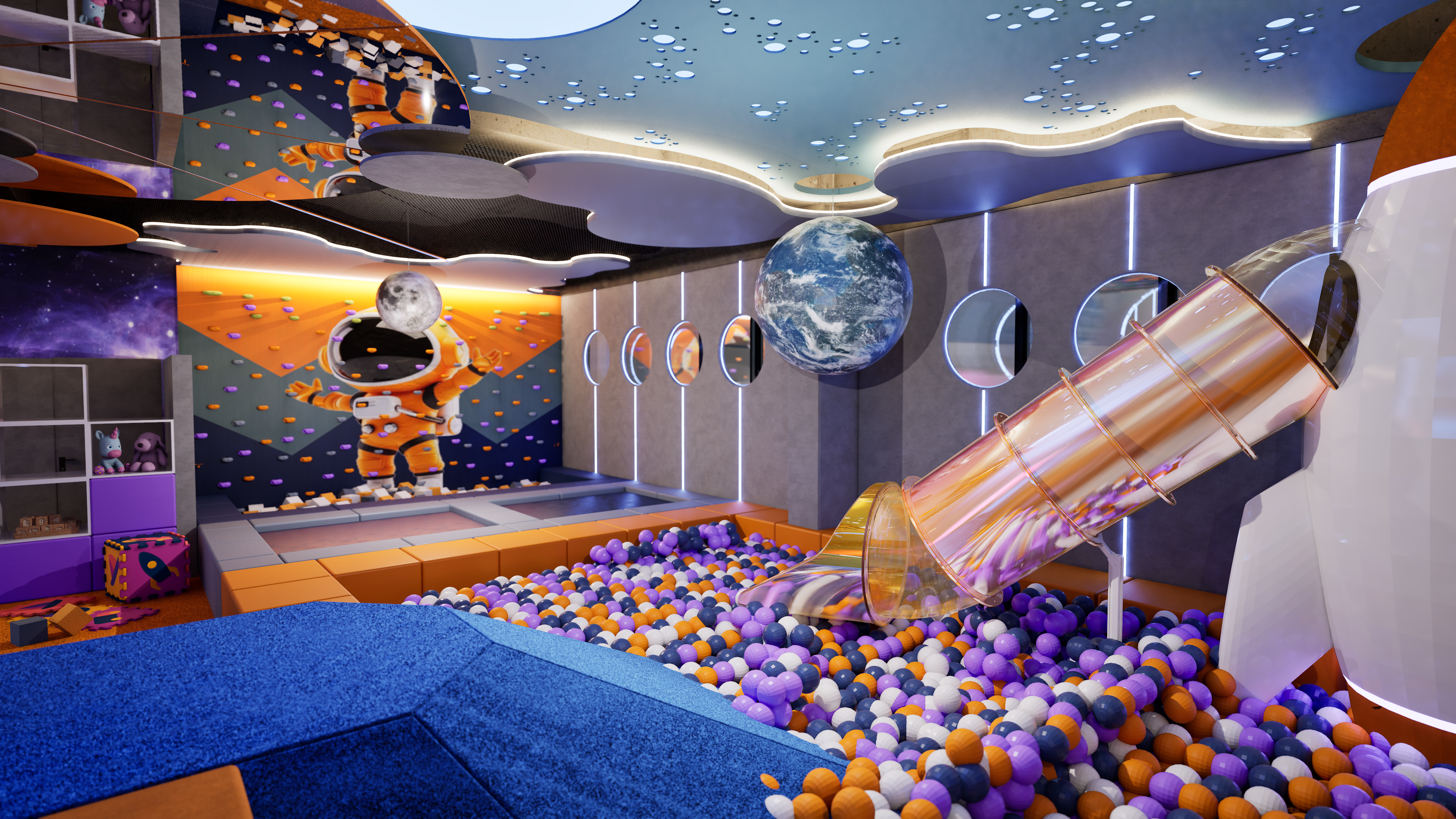 - Indoor City: O zona complexa de joaca, unde copiii pot explora un mini-oras, urca pe pereti de escalada, aluneca pe tobogane sau se pot scufunda intr-o piscina cu bile.