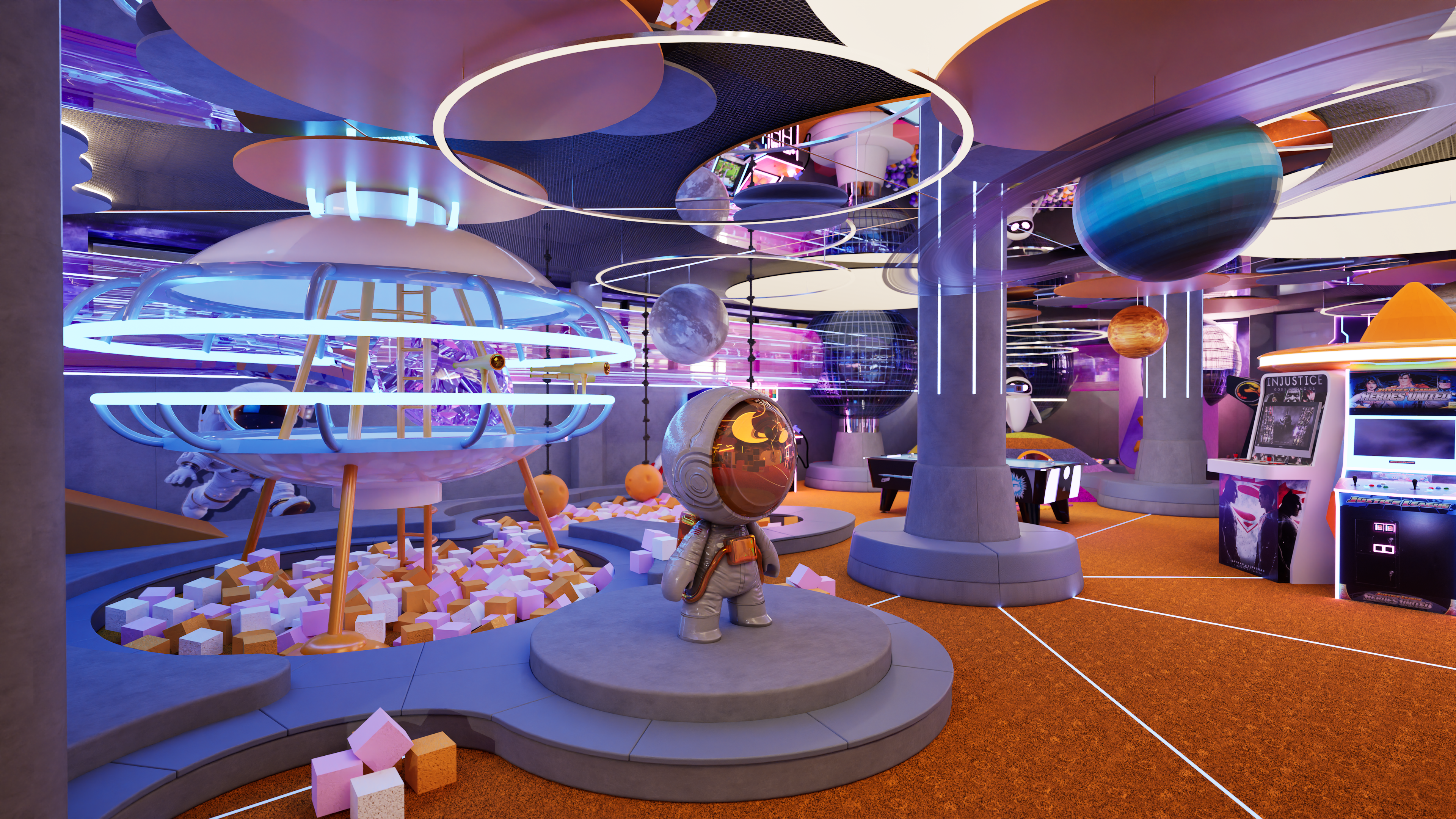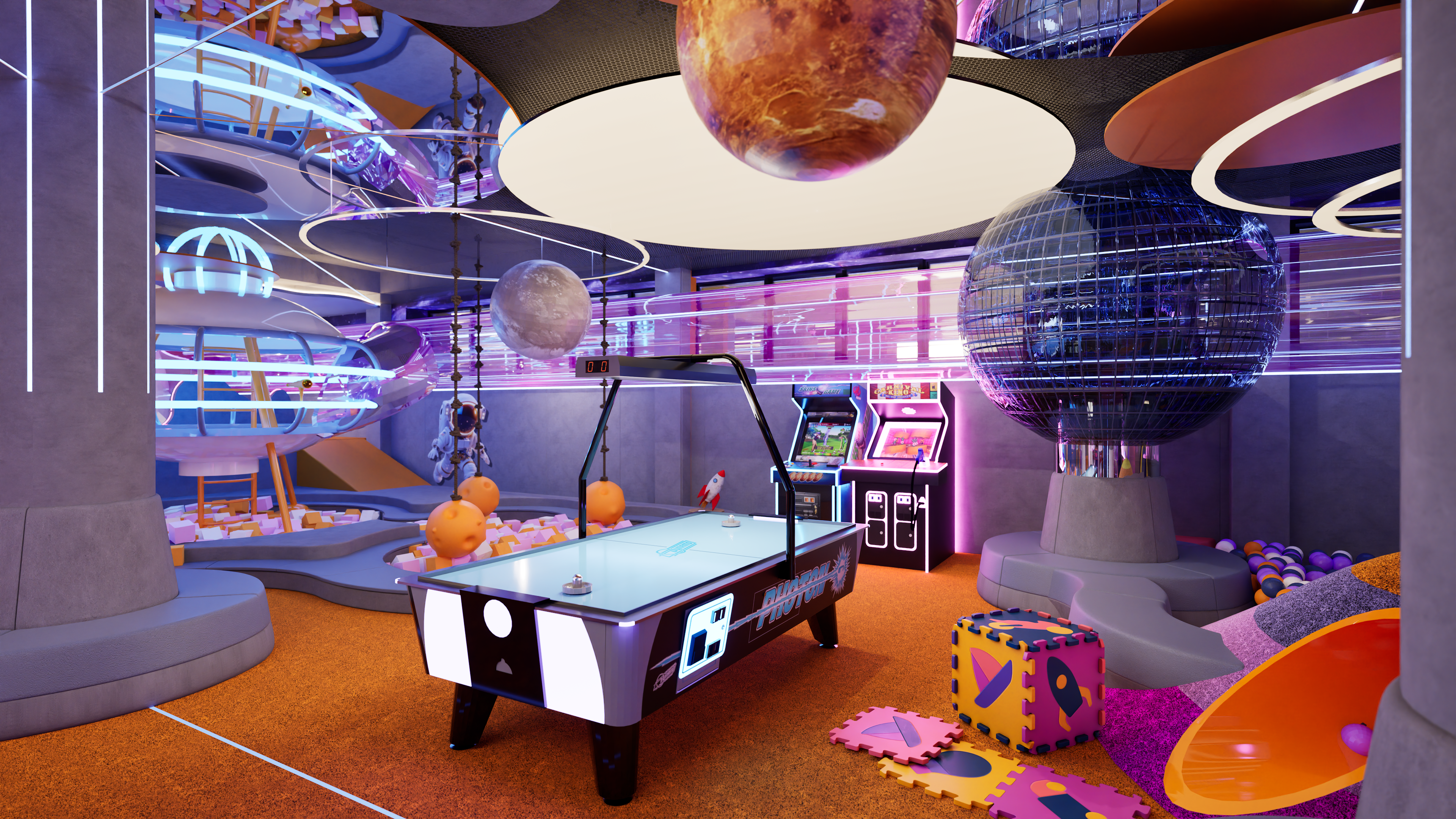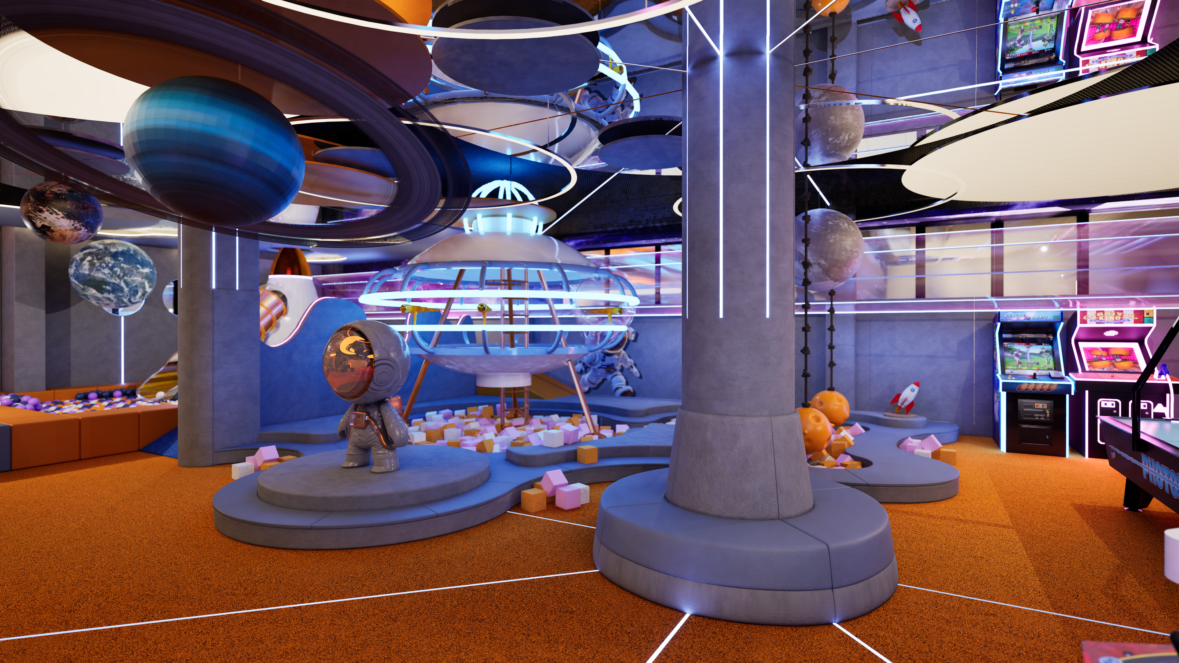 - Indoor City: O zona complexa de joaca, unde copiii pot explora un mini-oras, urca pe pereti de escalada, aluneca pe tobogane sau se pot scufunda intr-o piscina cu bile.