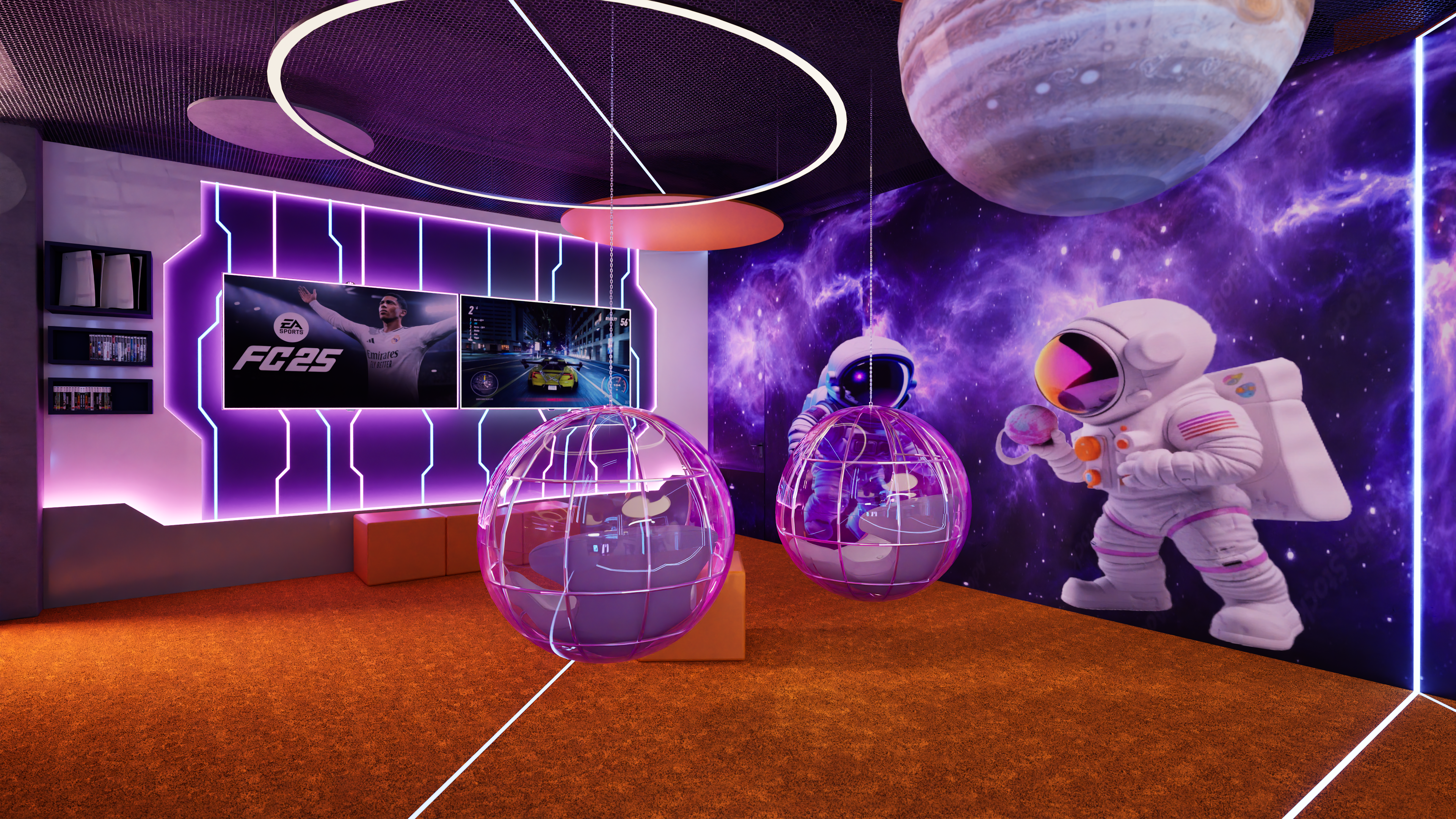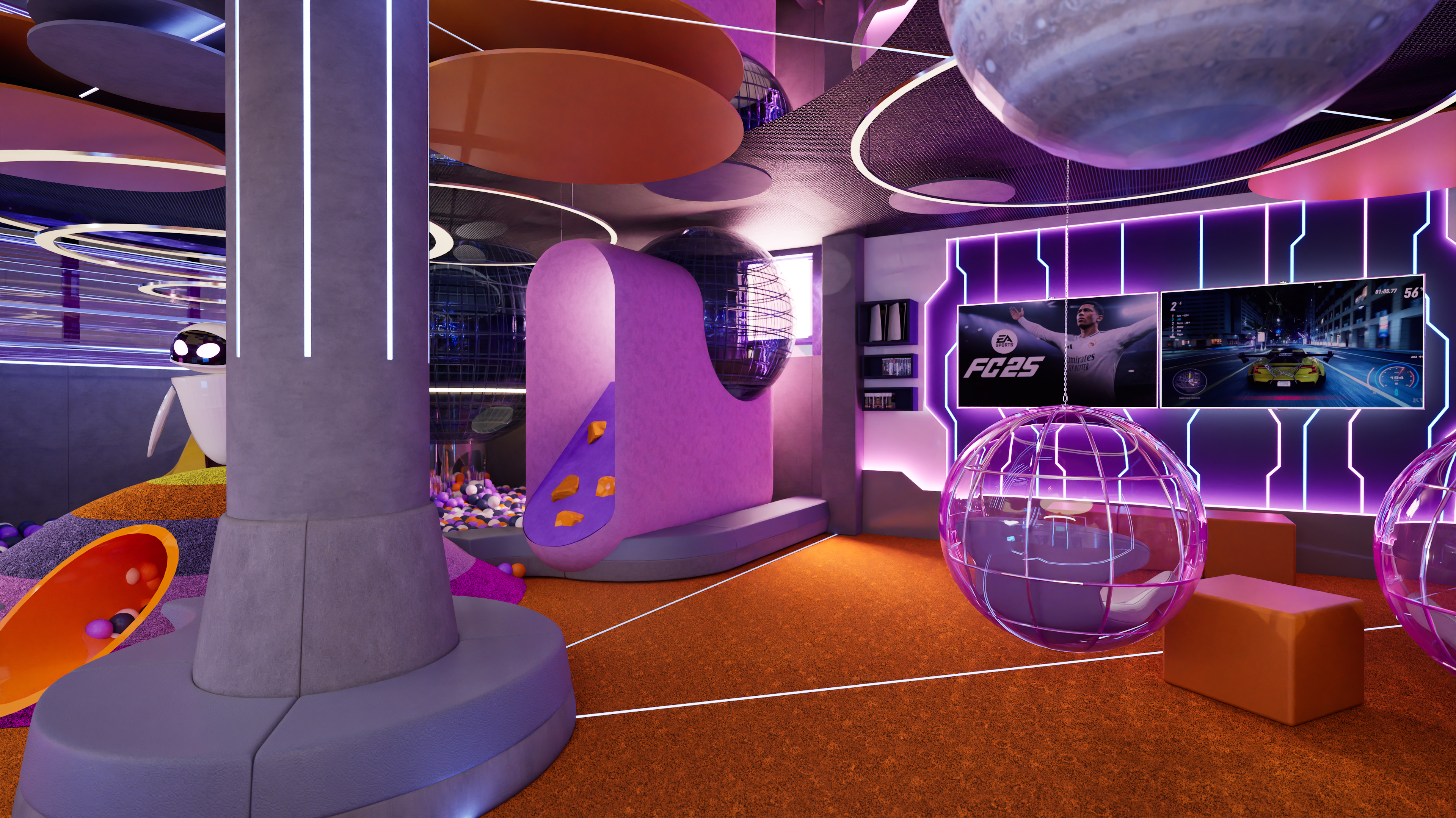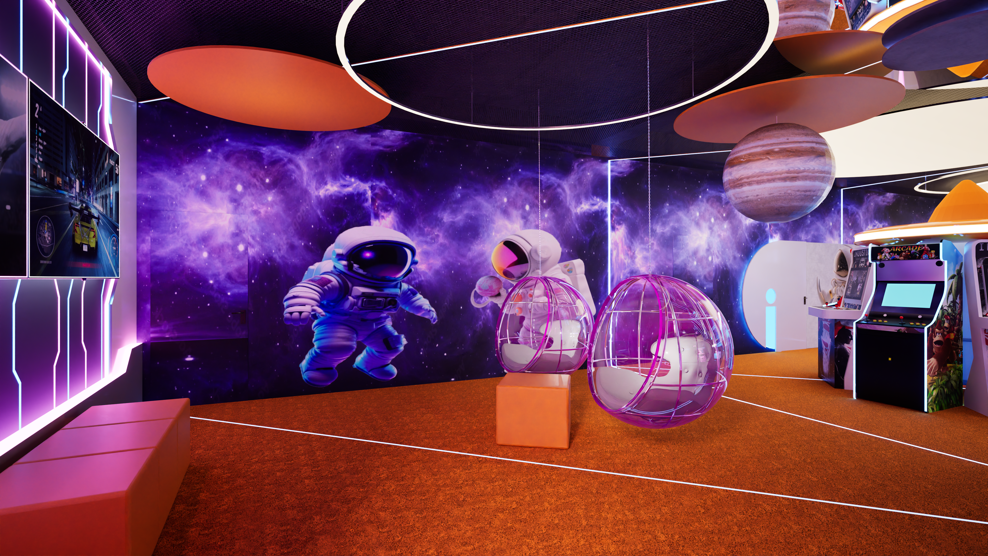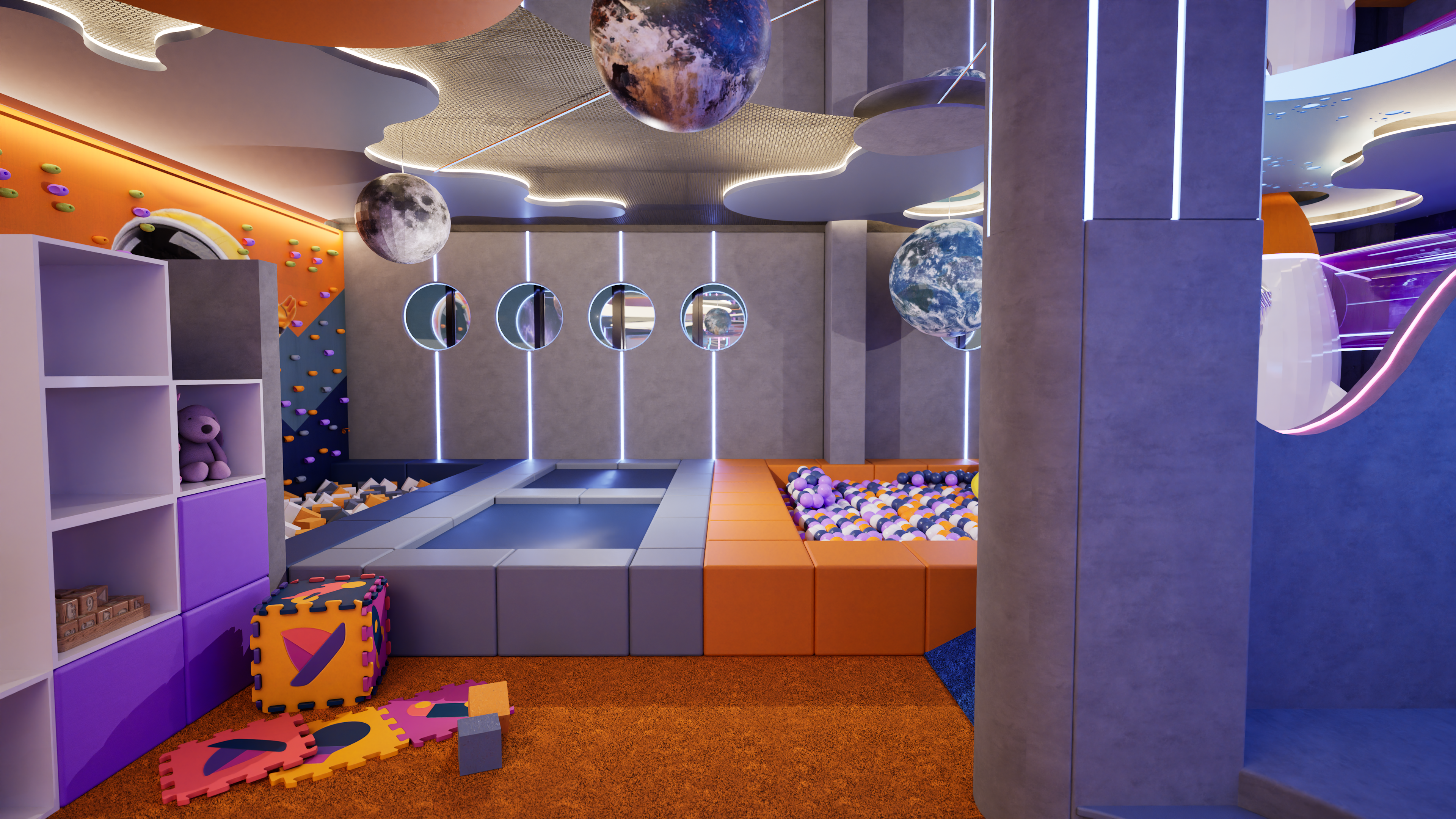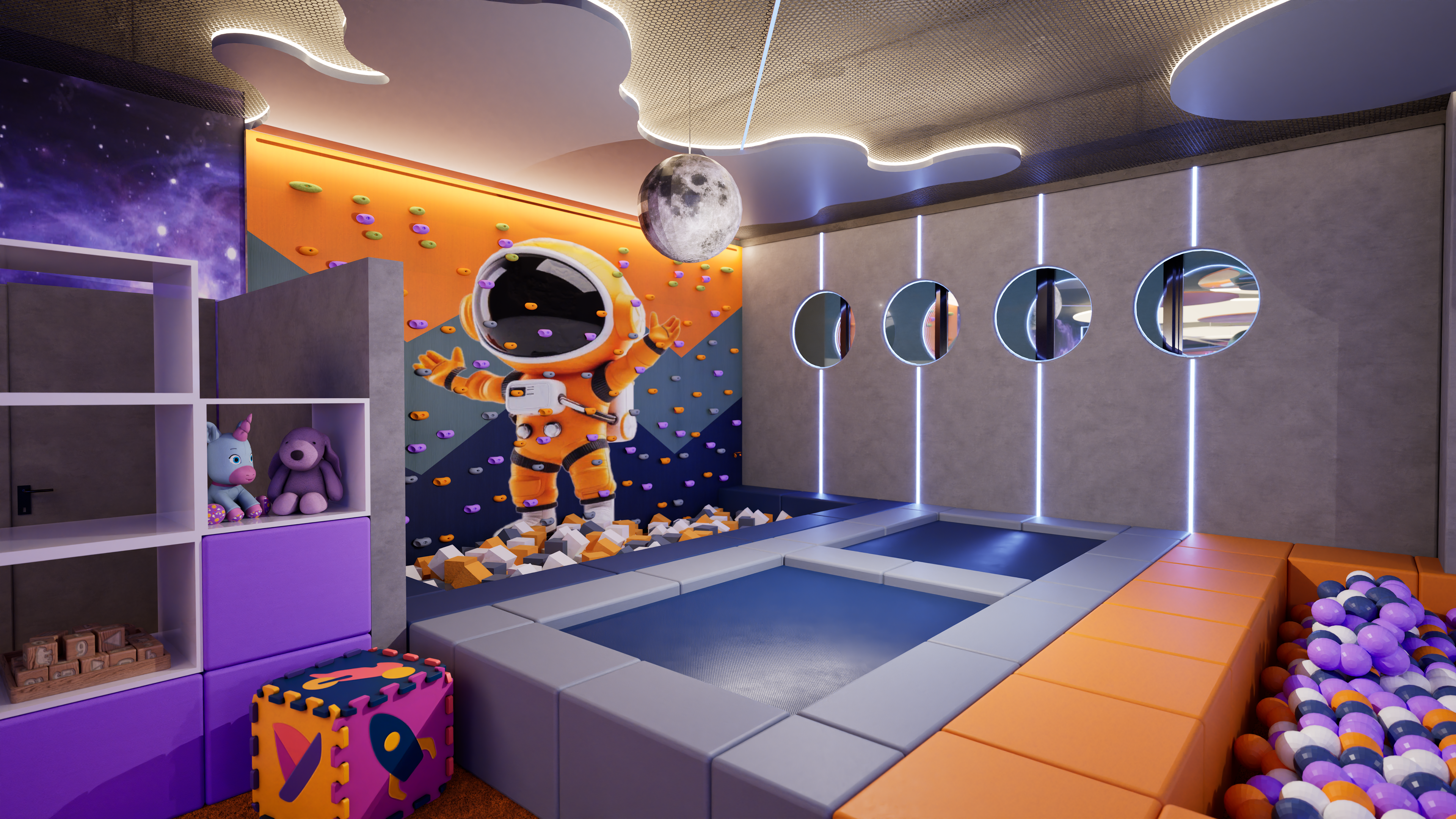 Etajul 1 este dedicat in intregime celor mici, cu un loc de joaca ultramodern, structurat pe mai multe zone care sa stimuleze creativitatea si distractia copiilor.